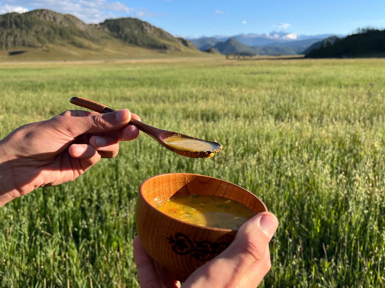 Крем-борщ в варианте быстрого приготовления. За счёт полностью растительных компонентов и малого веса этот борщ насыщает и даёт лёгкость в пути, а родной и традиционный вкус согревает душу.