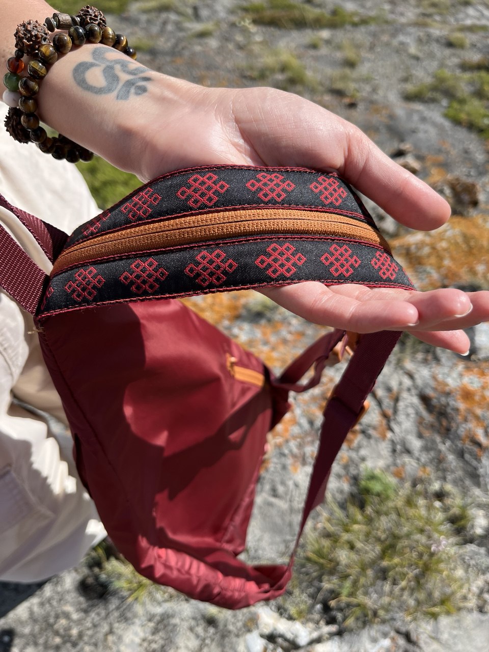 Тибетский бренд Tenzing из Нью-Дели создаёт качественные сумки и аксессуары с традиционными художественными элементами. Это настоящий органайзер с большим количеством карманов и продуманных тайников. Очки, телефон, паспорт, одежда и пара обуви - для всех необходимых в путешествии вещей есть своё место.