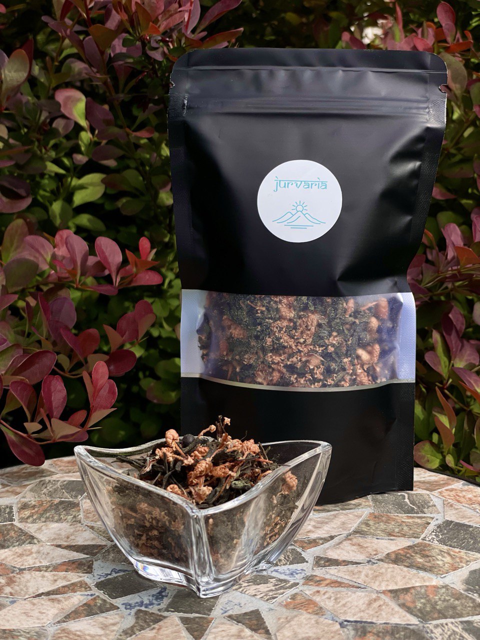 Сильный имунностимулятор, антибиотик и антиоксидант. Разжижает кровь и расширяет сосуды. Стимулирует ЖКТ. Собрана на высоте 1800 метров.